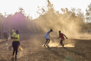 So, as I move through these communities, photographing the grit, joy, and resilience of players on dusty grounds, I carry with me a vision for what’s to come. My lens captures not only where we are but where we’re headed—a future where African stories are celebrated worldwide. Through every image, I seek to honor the communal bonds that shaped me and the fields that raised me, knowing that they’ve prepared me to tell stories from every corner of the earth.