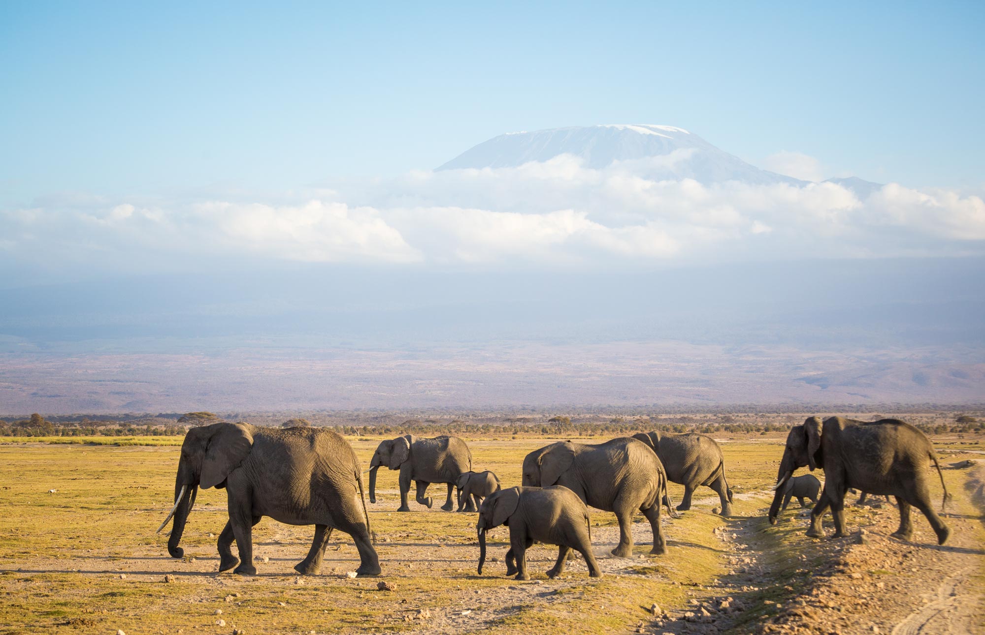 A family in Amboseli National Park, Kenya heading home after a long day.
